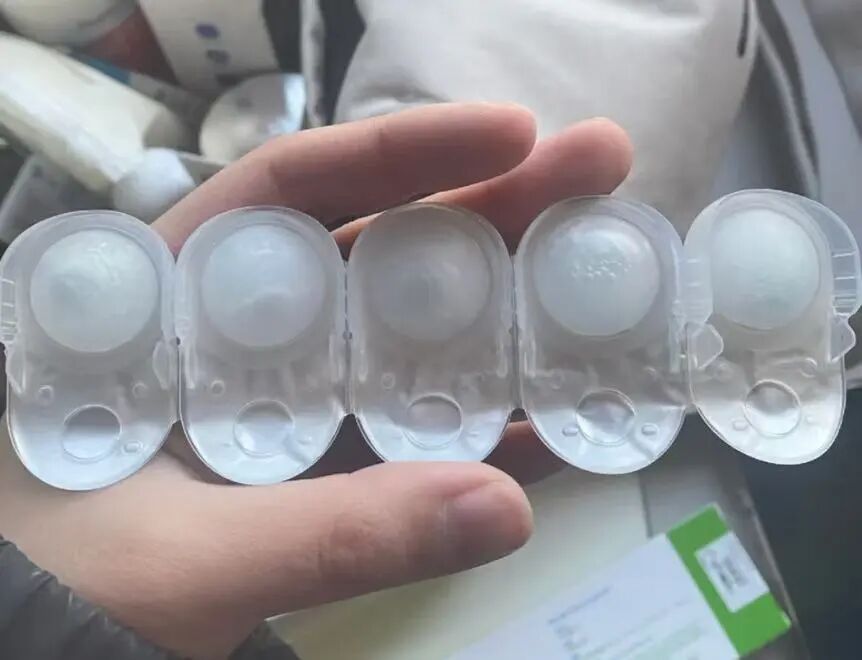 软性的隐形眼镜戴在眼球表面,有体温护着不会被冻住,但护理液会冻住啊!下火车住进酒店,刚准备摘隐形眼镜睡觉呢,嘿,一瓶硬邦邦的护理液倒不出来了!要是镜片泡在护理液里跟盒子一起被带到室外一阵子,你还会得到隐形眼镜夹心的冰块。